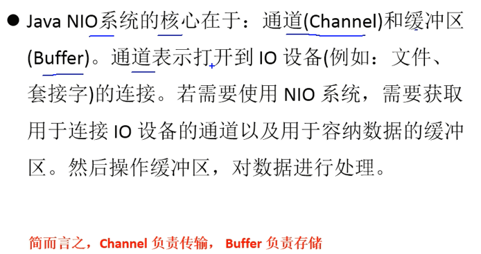 总结: 通道就是用于源节点和目标节点的链接。在java NIO中负责缓冲区中数据的传输,Channel本身 不存储数据,因此需要配合缓冲区进行传输。