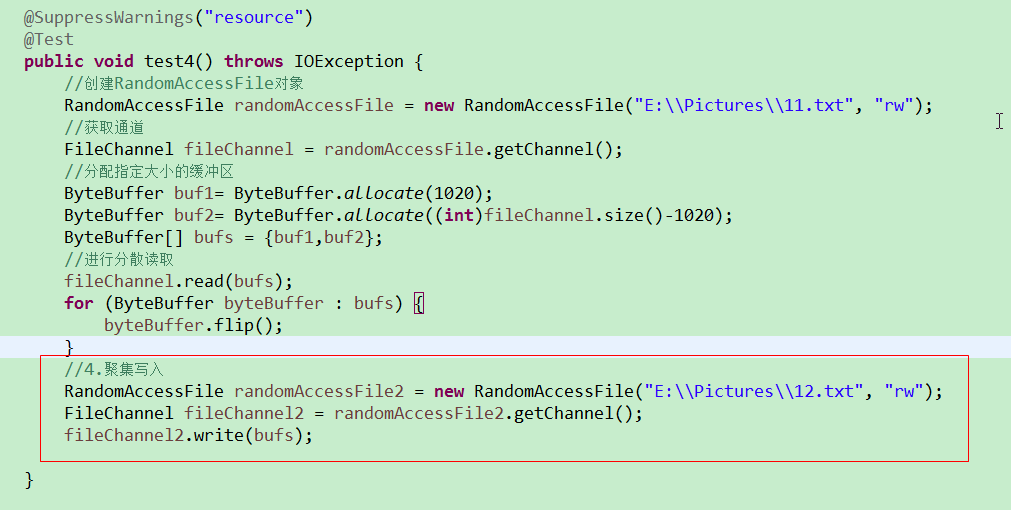 b:聚集写入:将多个缓冲区中的数据聚集到通道中